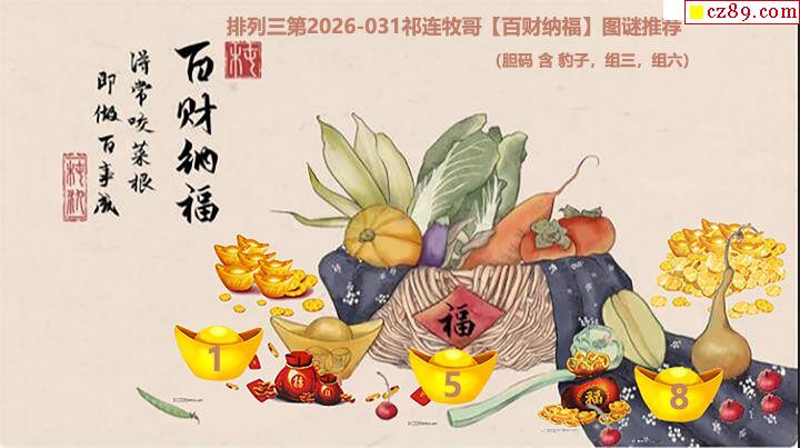 首页 > 排列3图谜 > 2026031期排列三 百财纳福胆码图
